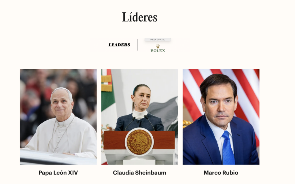 En la misma categoría de líderes influyentes de la lista de Time, aparecen personajes internacionales como: