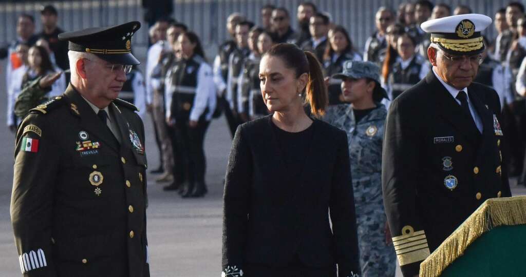 Ricardo Trevilla Trejo y Raymundo Morales, secretarios de la Defensa Nacional y de la Marina respectivamente, estuvieron junto a la mandataria durante la ceremonia. Entre los presentes también estuvieron mandos de la Guardia Nacional, el presidente de la Cruz Roja Mexicana, la Coordinación Nacional de Protección Civil y la Jefa de Gobierno de la Ciudad de México, Clara Brugada.