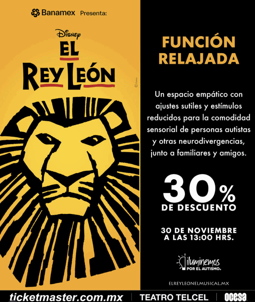 ¿Eres o conoces a una persona neurodivergente que disfruta del teatro? Prepárate porque “El Rey León” tendrá una función relajada, es decir, adaptada para persona autistas y neurodivergentes.