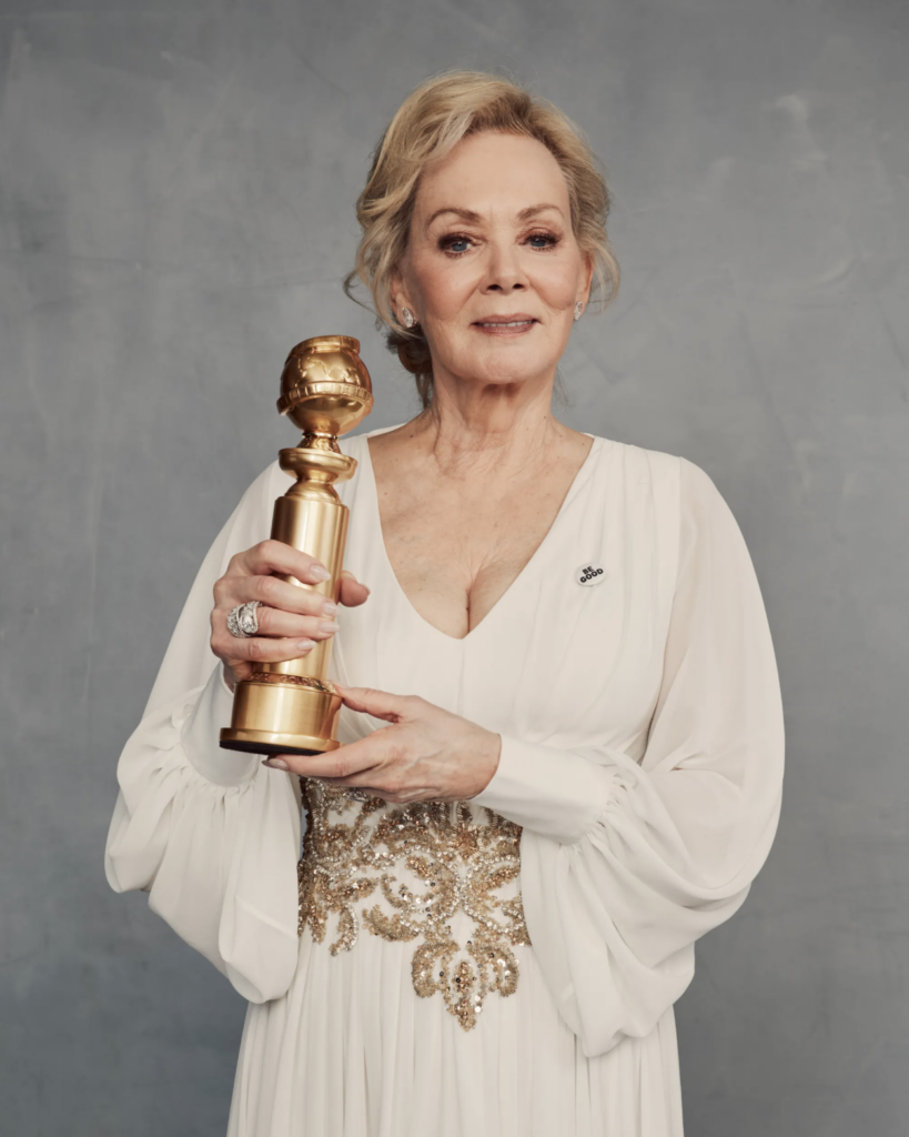 La actriz estadounidense Jean Smart no sólo desfiló con el pin sino que resultó la ganadora de la categoría a “Mejor actriz en una serie musical o comedia” por lo que subió a recibir su premio portándolo en su outfit.